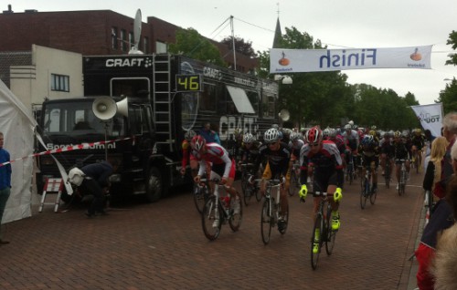 Zondag 26 mei, om 15:30, start van A/Sport/Mas/Jun/Nwl Mannen in het Criterium Hoogezand-Sappemeer 2013.